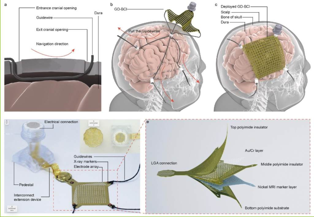 Brain-computer interfaces (BCIs) serve as a bridge connecting the brain to external devices, bypassing traditional pathways such as muscles and nerves to enable direct interaction between brain signals and machines. They hold irreplaceable value in treating neurological disorders like epilepsy and Parkinson's disease, as well as in fields such as motor function rehabilitation and auditory prosthesis development. Among these, the electrocorticogram brain-computer interface (ECoG-BCI) is regarded as the "gold standard" for clinical applications due to its superior signal quality compared to scalp electroencephalography and its lower invasiveness than intracranial electrode implants. However, existing ECoG devices have long faced a dilemma: either they feature low electrode density and limited coverage, making it difficult to capture intricate neural signals; or they require extensive craniotomy, posing high surgical risks and increasing susceptibility to complications such as cerebral oedema and infection, which severely limits their widespread adoption.